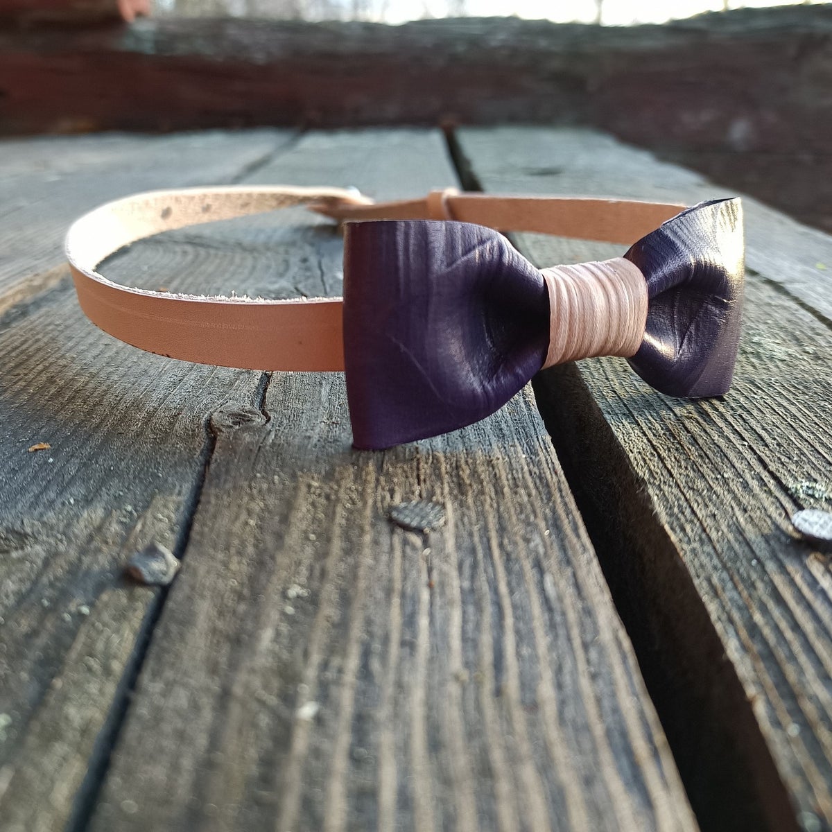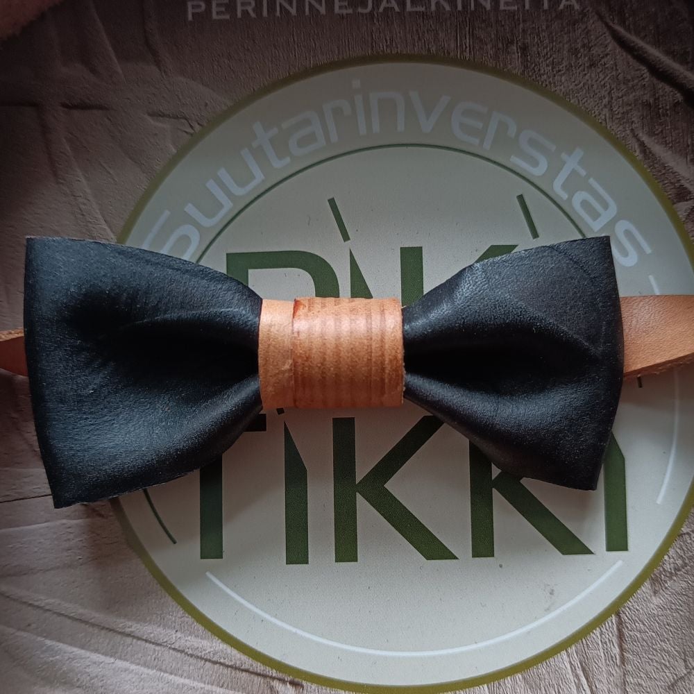 The bow tie is made from vegetable-tanned leather, a durable and timeless material. With use, the leather develops a natural patina and gradually darkens in light to a warm reddish tone, making each bow tie even more distinctive over time. The adjustable strap is also made from vegetable-tanned leather.